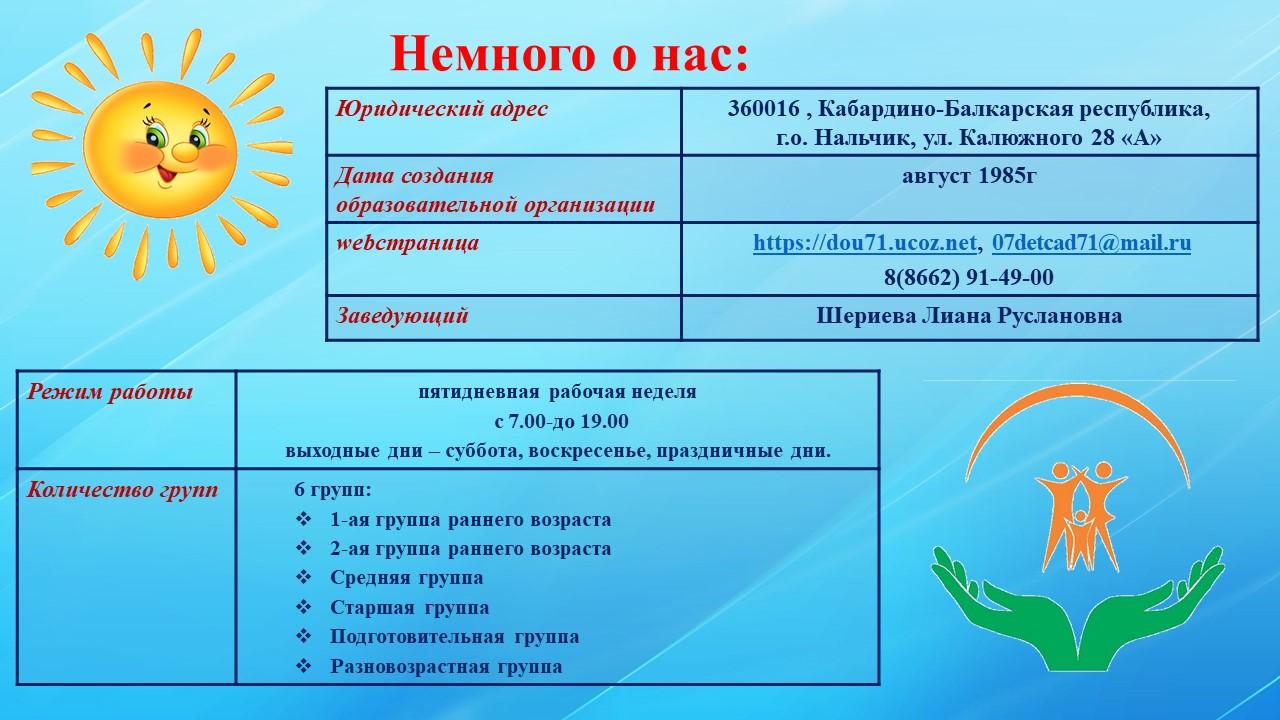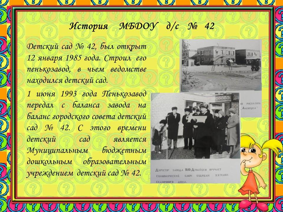 Дата создания организации: 07 июня 1991 года, реорганизовано в форме присоединения МБДОУ № 19 "Ручеёк".